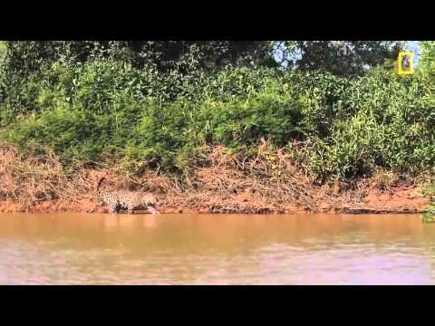 W przeciwieństwie do wielu innych kotów , jaguary nie unikać wody , w rzeczywistości są one bardzo dobrymi pływakami . Rzeki zapewniają zdobycz w postaci ryb , żółwie, czy kajmanów - małych, alligator like zwierząt . Jaguary jeść również większe zwierzęta , takie jak jelenie, pekari , capybaras i tapiry . Czasem wspinać się na drzewa , aby przygotować zasadzkę , zabijając swoje ofiary z jednego potężnego ugryzienia .
